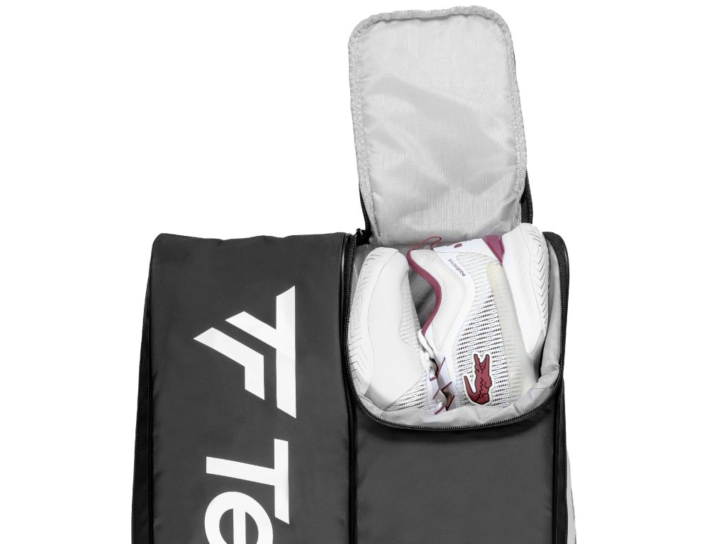 Tecnifibre TOUR ENDURANCE WHITE 12R je sportovní taška navržená tak, aby odolala těm nejtvrdším podmínkám, které hráči zažívají na Tour. Je ideální volbou pro intenzivní tenisovou i squashovou praxi, turnaje i týmové zápasy.