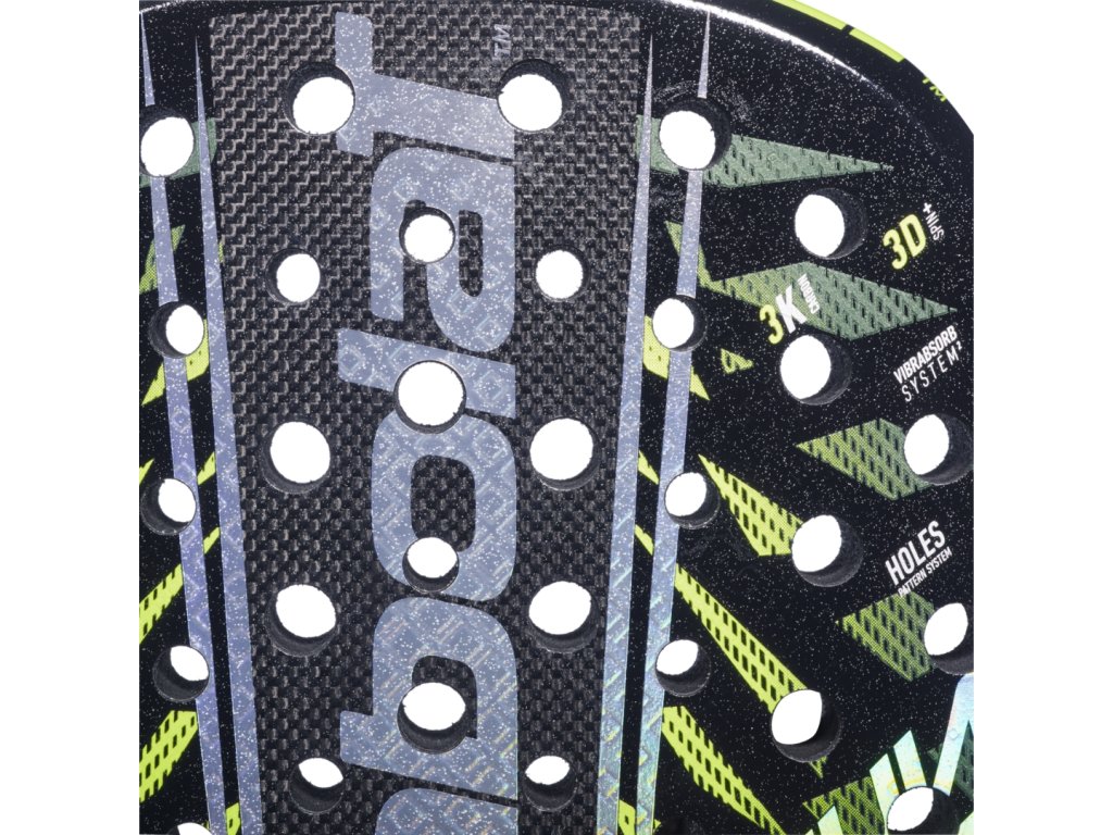 Optimalizované rozložení otvorů v hlavě rakety pro lepší aerodynamiku a konzistentní odezvu po celé ploše. Větší sweet spot díky promyšlenému designu.