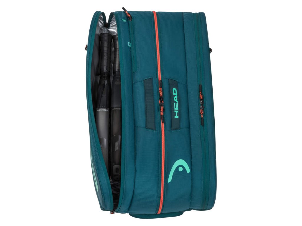 Tato padelová taška patří do prémiové řady Head Tour a přináší všechno, co od turnajového bagu očekáváš – termo přihrádku CCT+ pro ochranu raket, integrovaný oddíl na boty i promyšlený systém kapes pro rychlý přístup k telefonu a drobnostem.