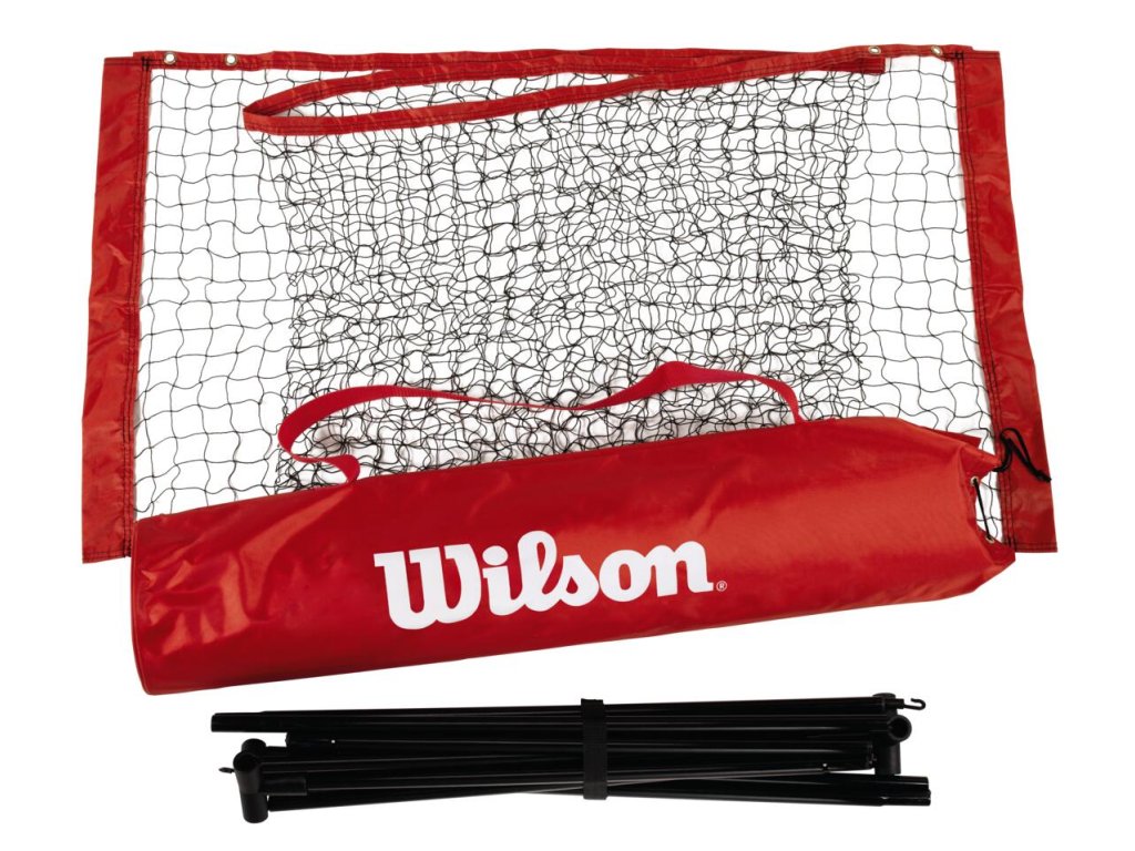 Skládací síť Wilson o šířce 6,10 m včetně lehkých hliníkových sloupků a síťoviny odolné vůči povětrnostním vlivům.