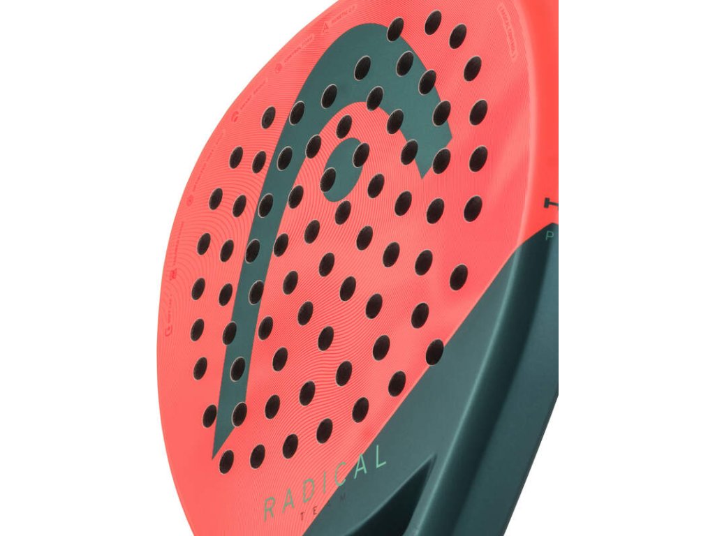 Head Radical Team má úderovou plochu ze skelných vláken (fiberglass), které je měkčí než karbon. Díky tomu nabízí vyšší komfort, lepší cit při úderu a příjemnější pocit ze hry. Při pomalejších výměnách máte lepší kontrolu nad míčem a snadnější jeho odchod z rakety. Ideální volba pro hráče, kteří hledají kontrolu a maximální cit místo tvrdého karbonového pocitu.