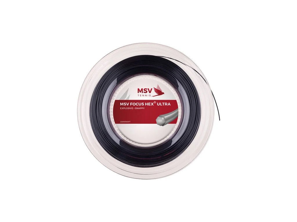 Tenisový výplet MSV Focus HEX polyesterové monovlákno s maximálnym spinom a trvanlivosťou. Obľúbený výplet z kategórie "drôtov", vyznačuje sa výbornou trvanlivosťou, neposúva sa v rakete. Štruktúra výpletu umocňuje topspinové údery a údery s falšou. Určené pre ambicióznych klubových a profesionálnych hráčov.