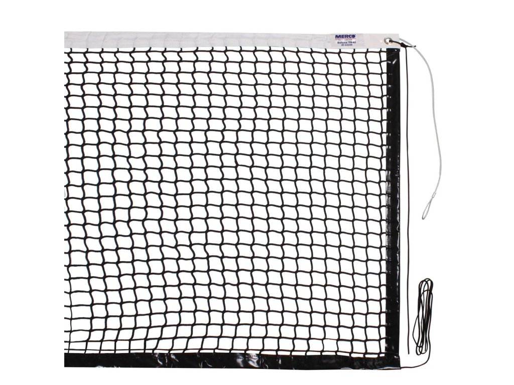 Tenisové sítě řady Merco jsou vyrobené od renomovaného evropského výrobce v takové kvalitě, aby splňovaly požadavky normy EN 1510. Tenisová bezuzlová síť Merco Deluxe TN50 je vhodná pro tenisové kluby a pro hru na všech výkonnostních úrovních. Síť je vyrobená z vysoce pevného, bezuzlového polypropylenu, který je odolný proti UV a povětrnostním vlivům. Díky tomu je síť vhodná pro použití v hale i na venkovních kurtech. Rozměry sítě jsou 12,8 x 1,07 m, velikost oka 35 mm a síla 5 mm. Horní bílá PES páska přidává síti dlouhou životnost. Síť se napíná pomocí ocelového lanka, které lze jednoduše zkrátit. Parametry: - odolný PP materiál - rozměry: 12,8 x 1,07 m - síla: 5 mm - velikost oka: 35 mm - horní bílá PES páska - PVC páska po celém obvodu - ocelové lanko, které lze zkrátit, délka 14 m - pro indoor i outdoor použití - pro všechny výkonnostní úrovně