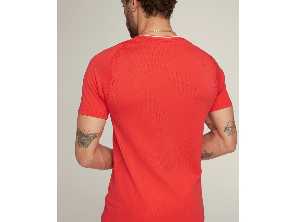 Tričko Player's Seamless Crew bylo inspirováno potřebným rozsahem pohybu tenisového hráče a tento poznatek se vztahuje na jakoukoli výkonnostní aktivitu, se kterou se můžete setkat. V tomto oděvu jsme se zaměřili na horní část těla pomocí raglánového sedla na ramenou, které neomezuje hráče při intenzivním pohybu, a zároveň v těch samých místech zajišťuje odvětrávání pro maximální proudění vzduchu, kde cítíte největší teplo.